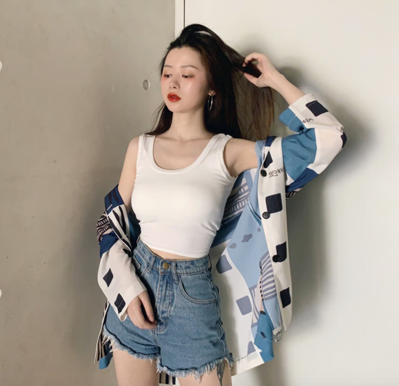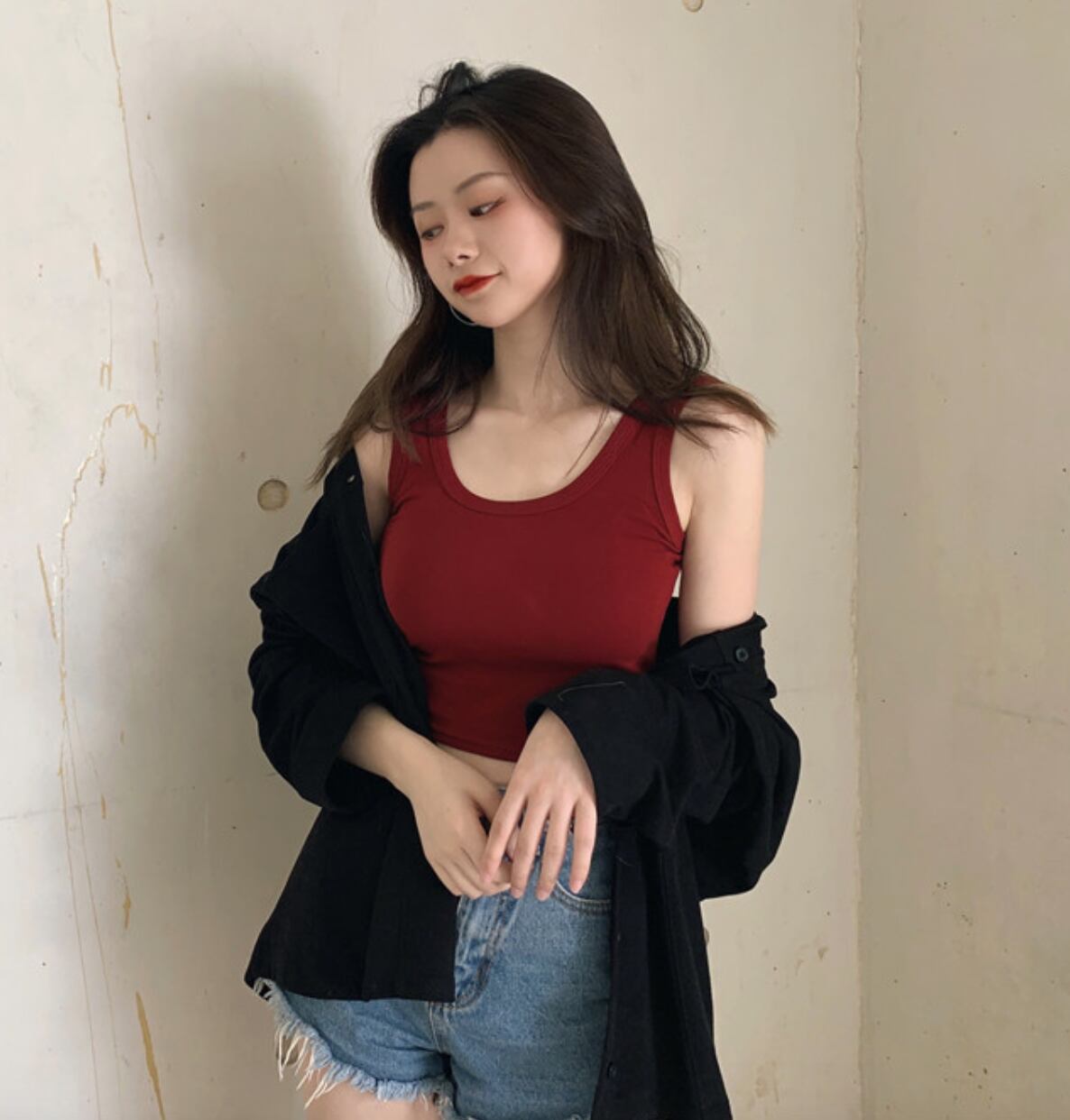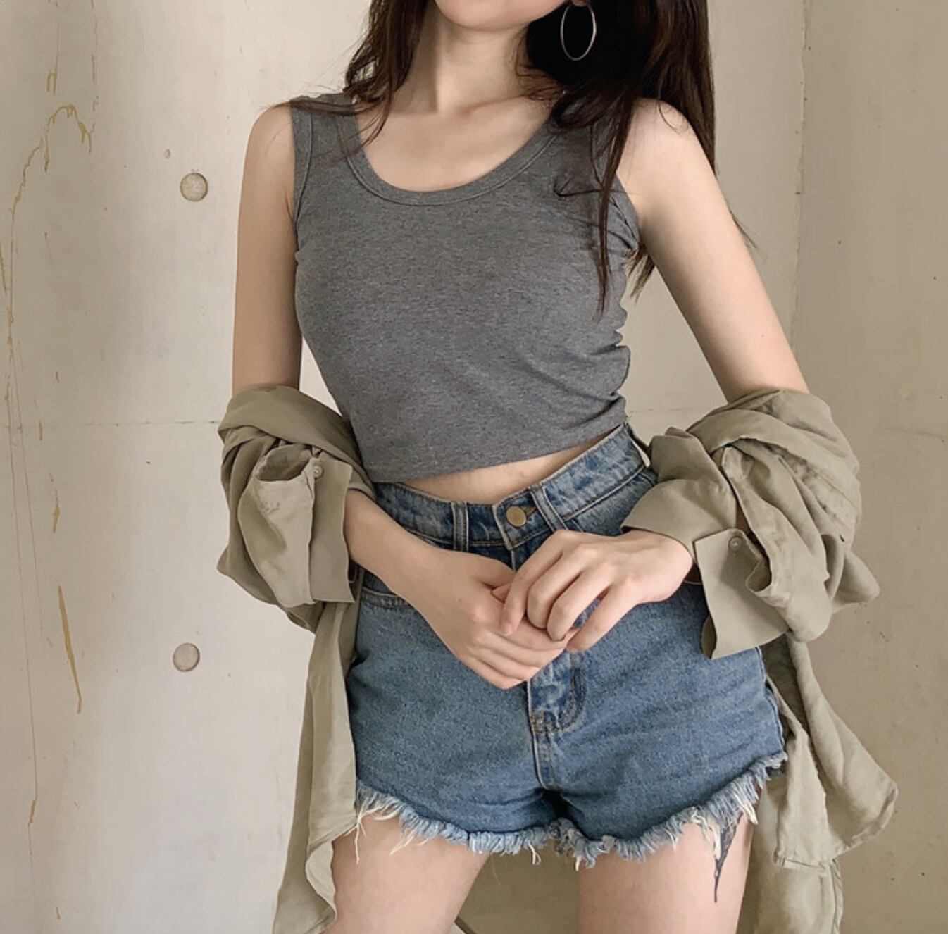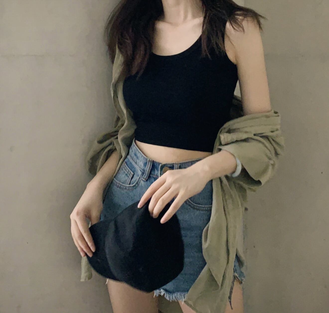 夏のノースリーブトップス ショート丈トップス