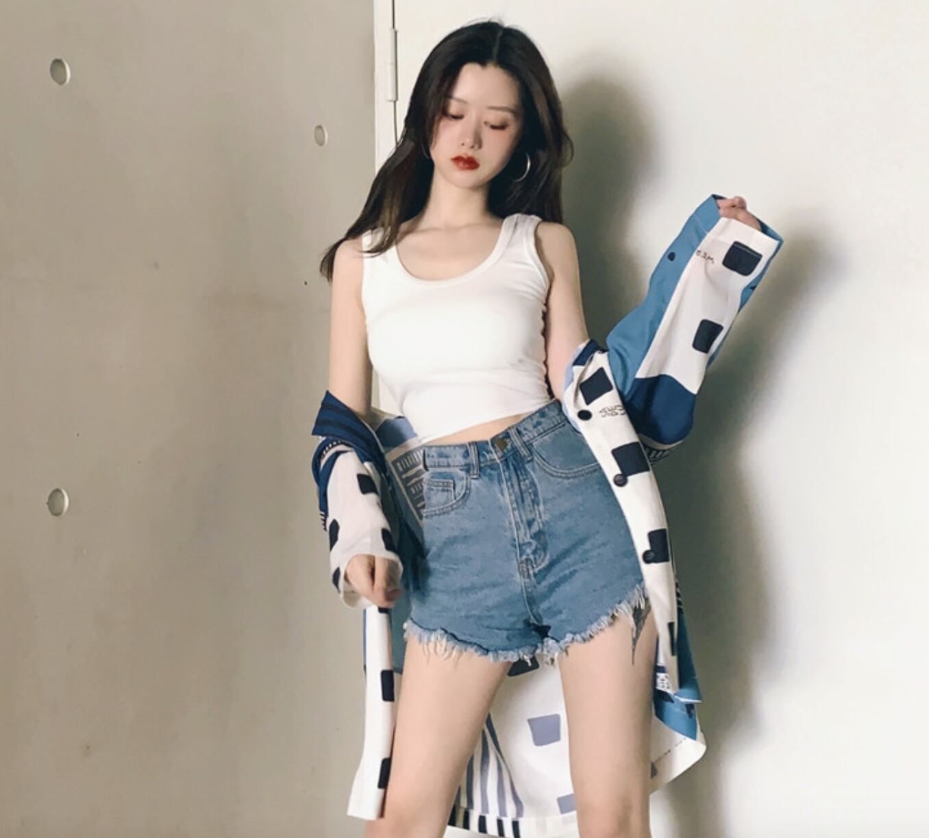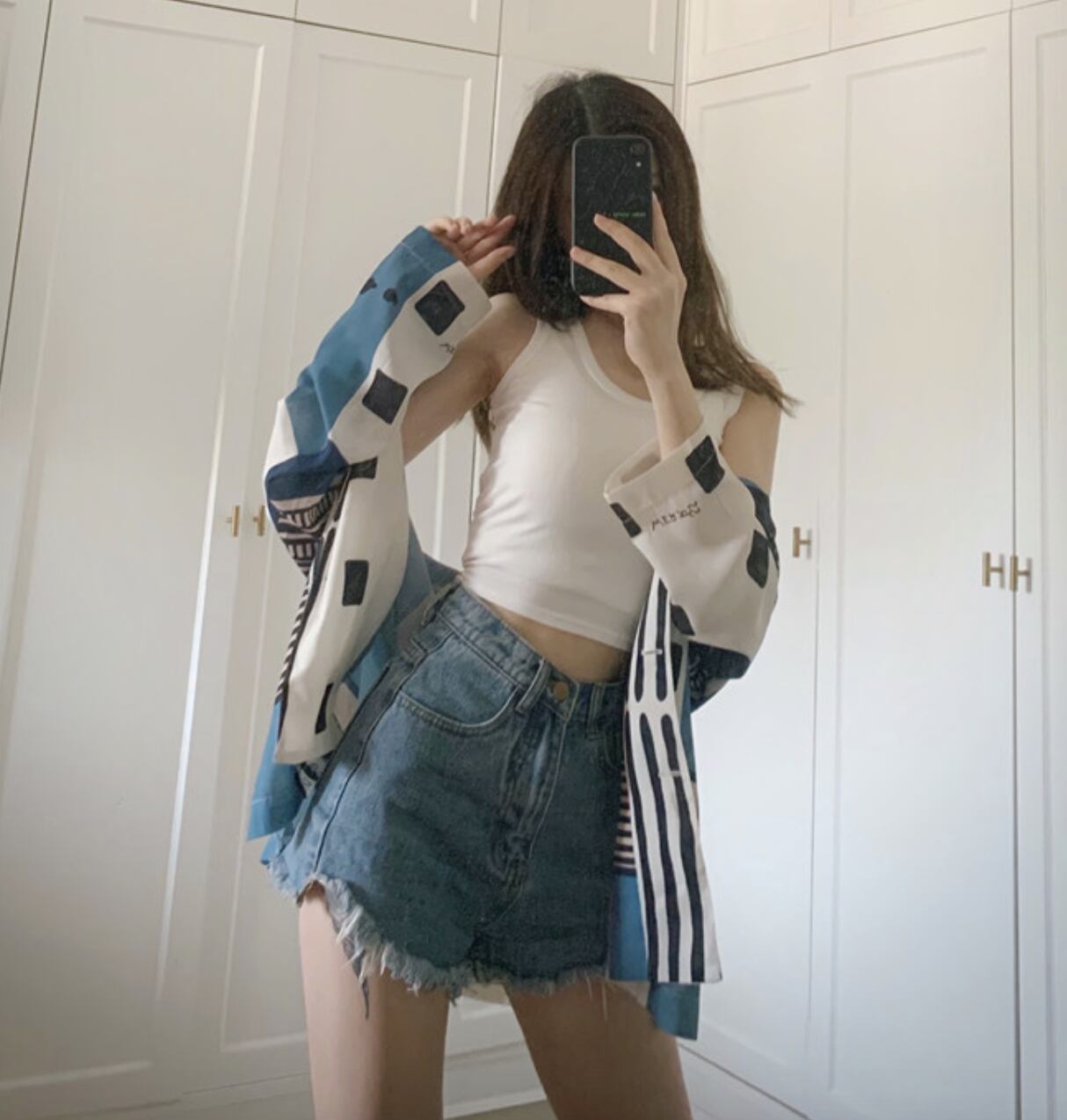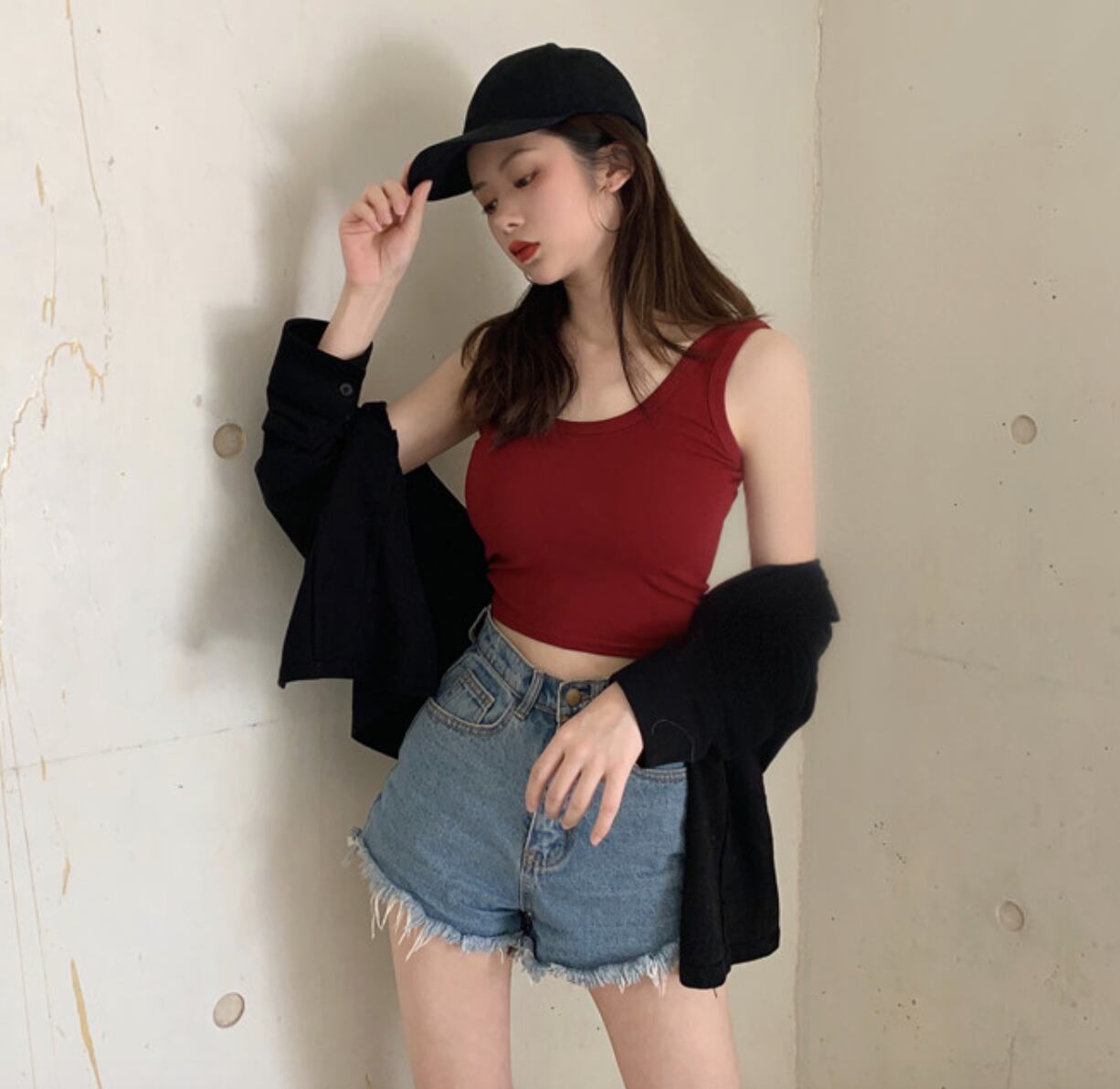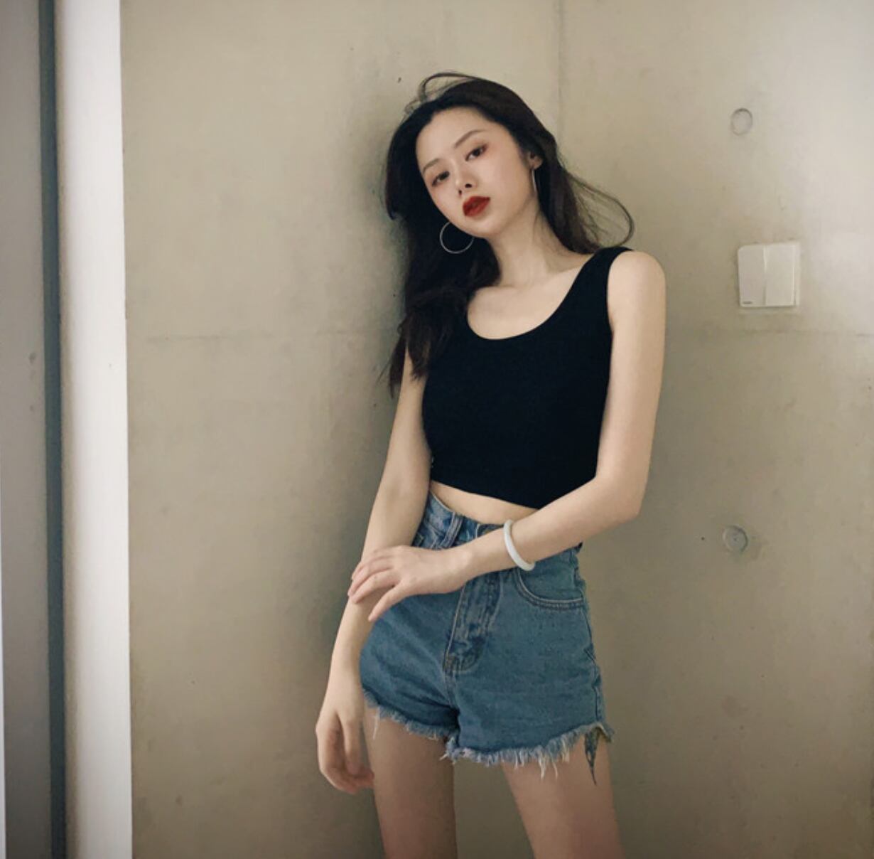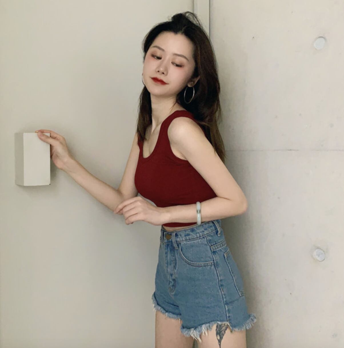 夏のノースリーブトップス ショート丈トップス