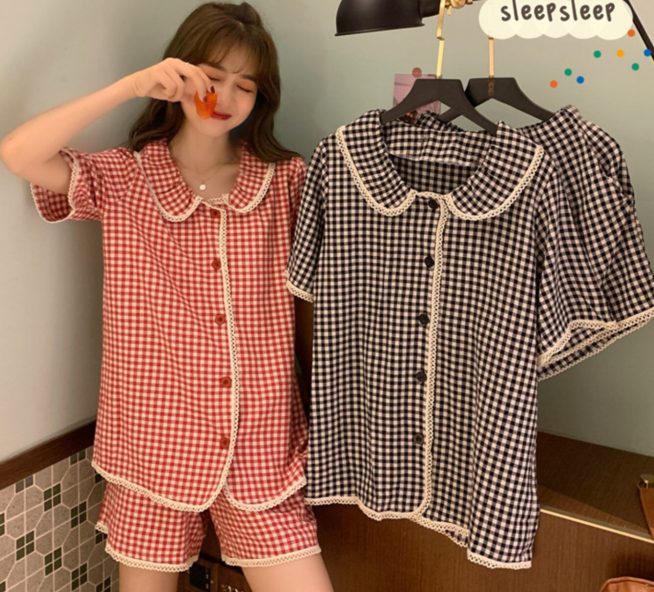 チェック柄 韓国風 パジャマ