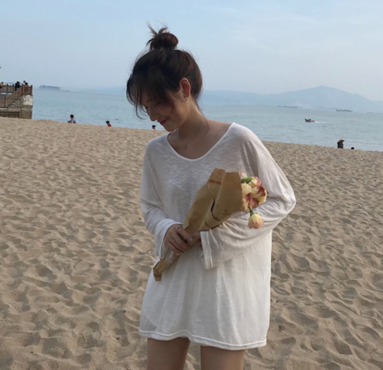 薄手ロングカットソー ロング丈 カジュアル スタイル