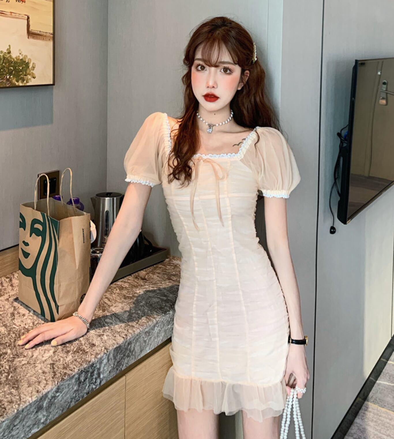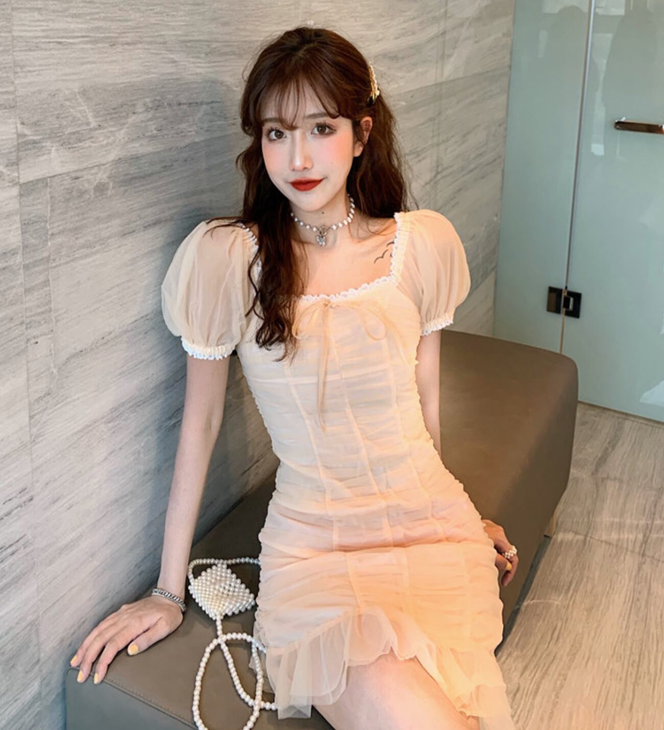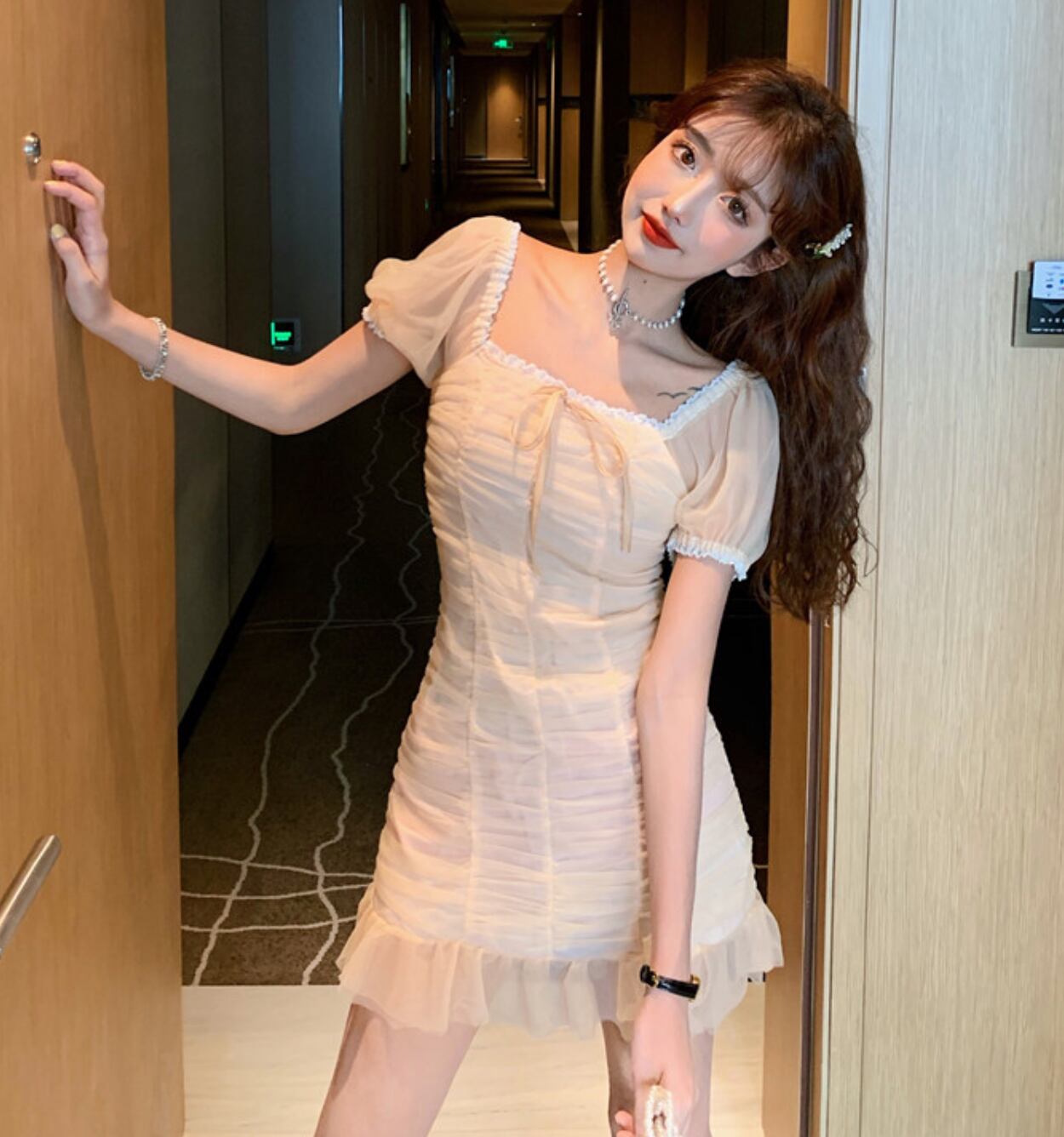 スクエア襟のミニ丈ドレス フリル 可愛い