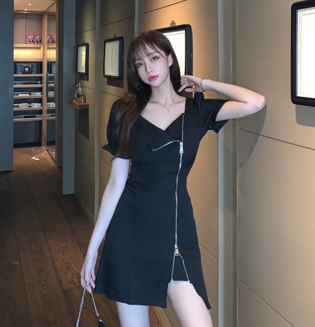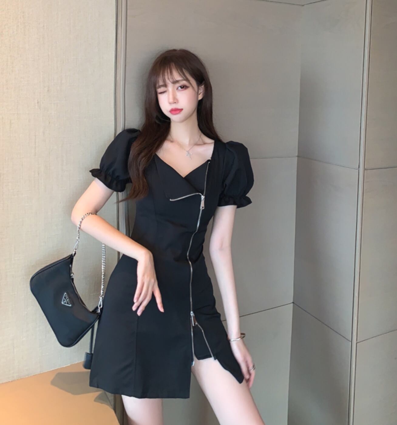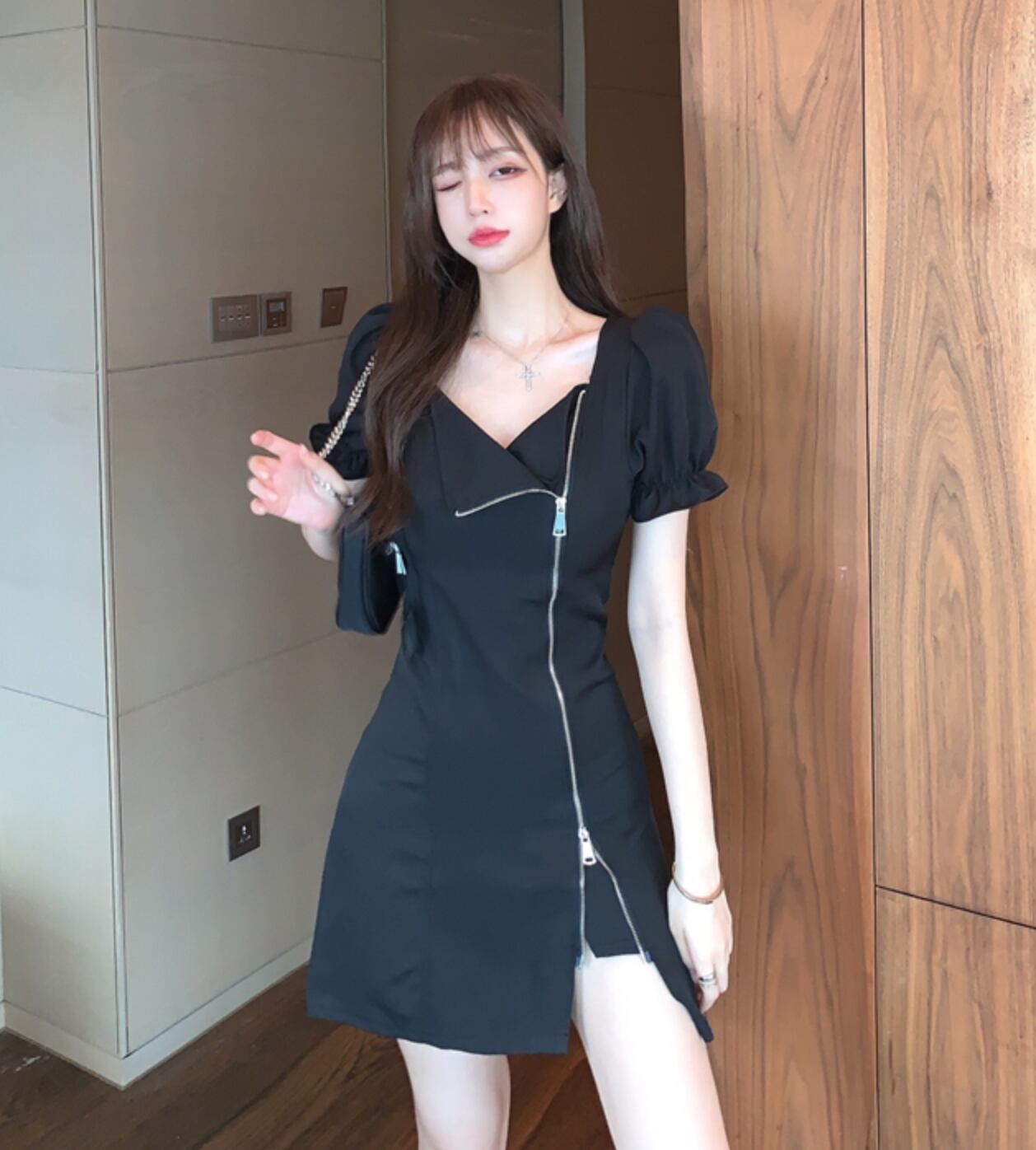 ジッパーデザインワンピース スリムワンピ 可愛い