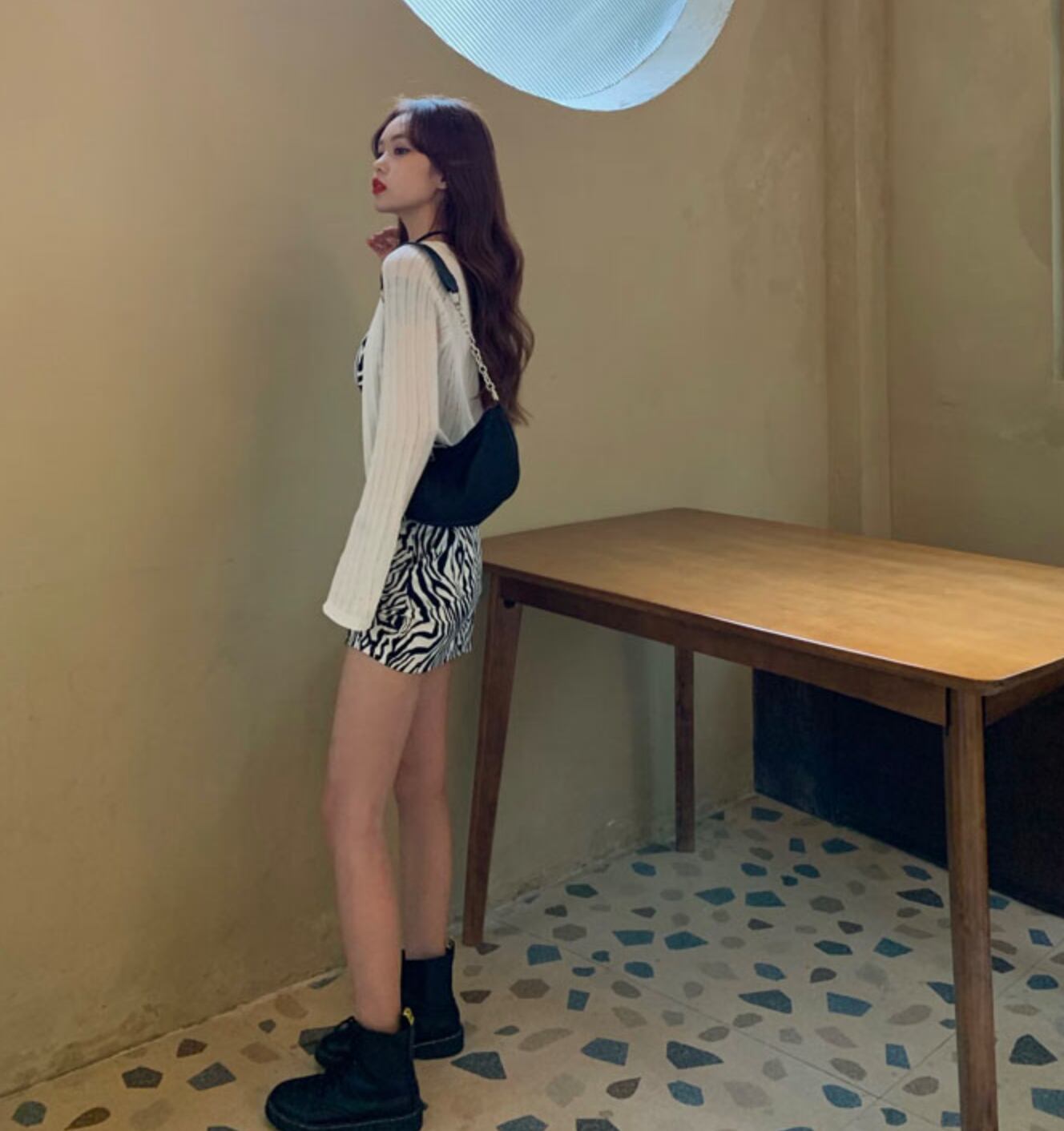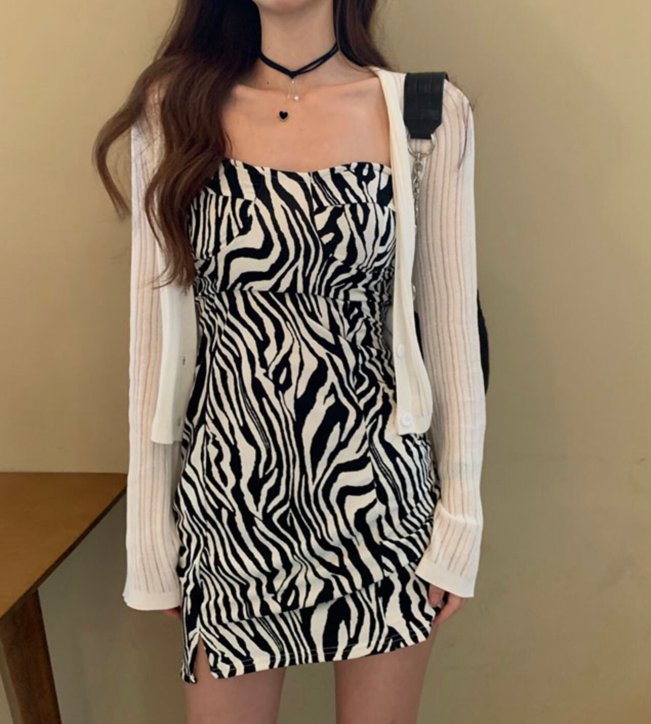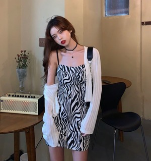 ゼブラデザイン ショート丈ワンピース ウエストスリム