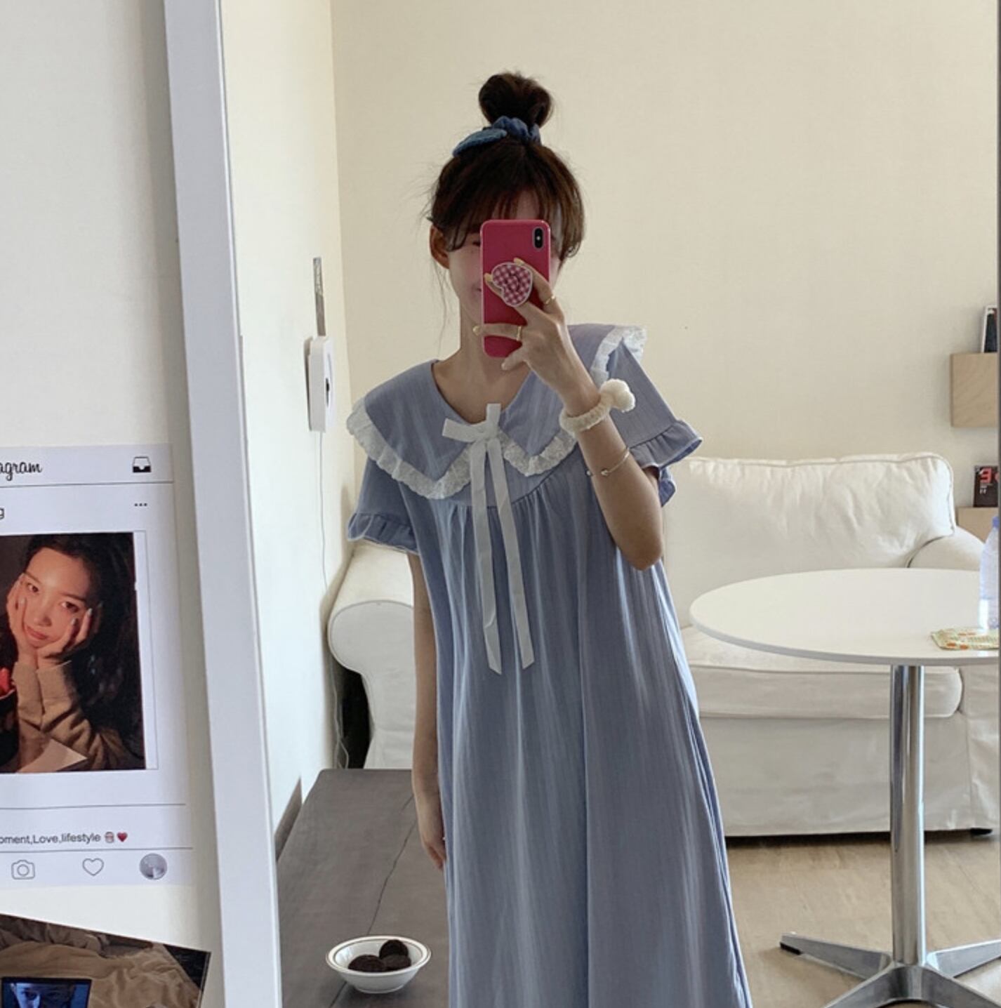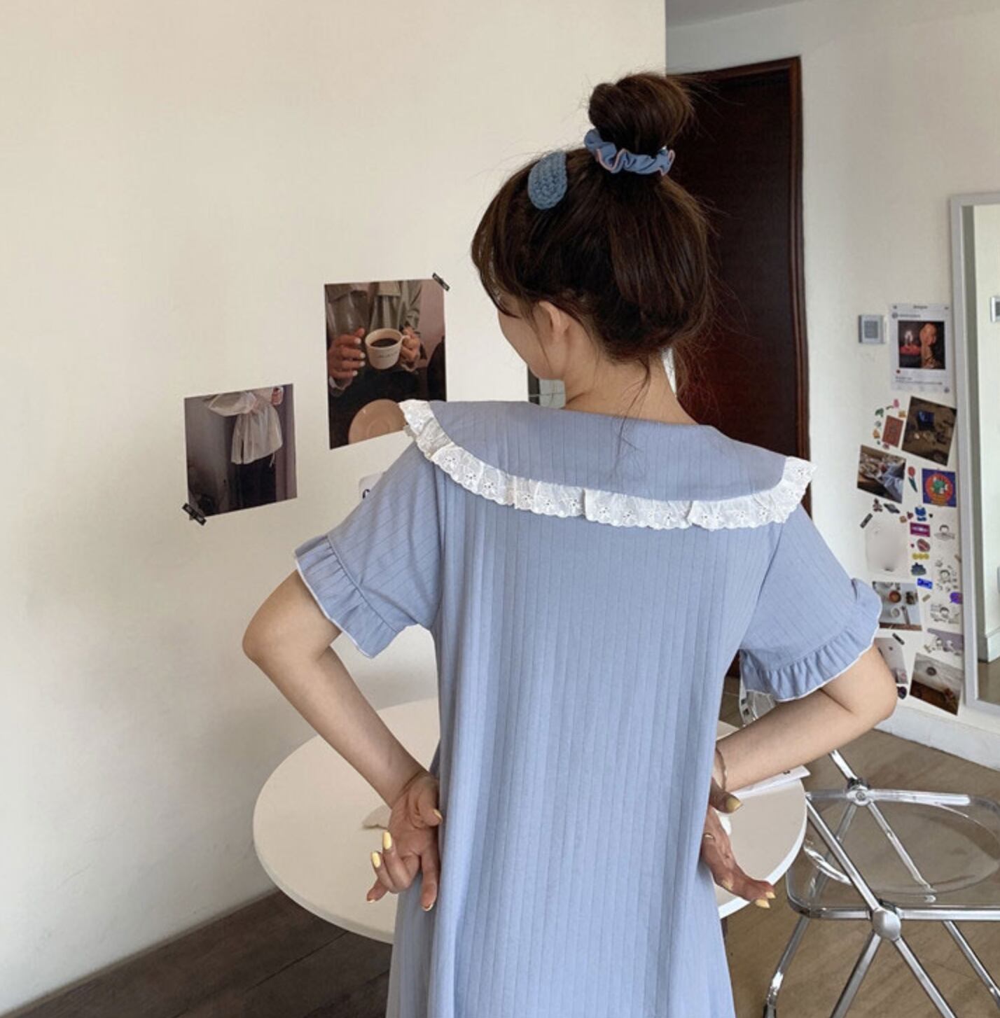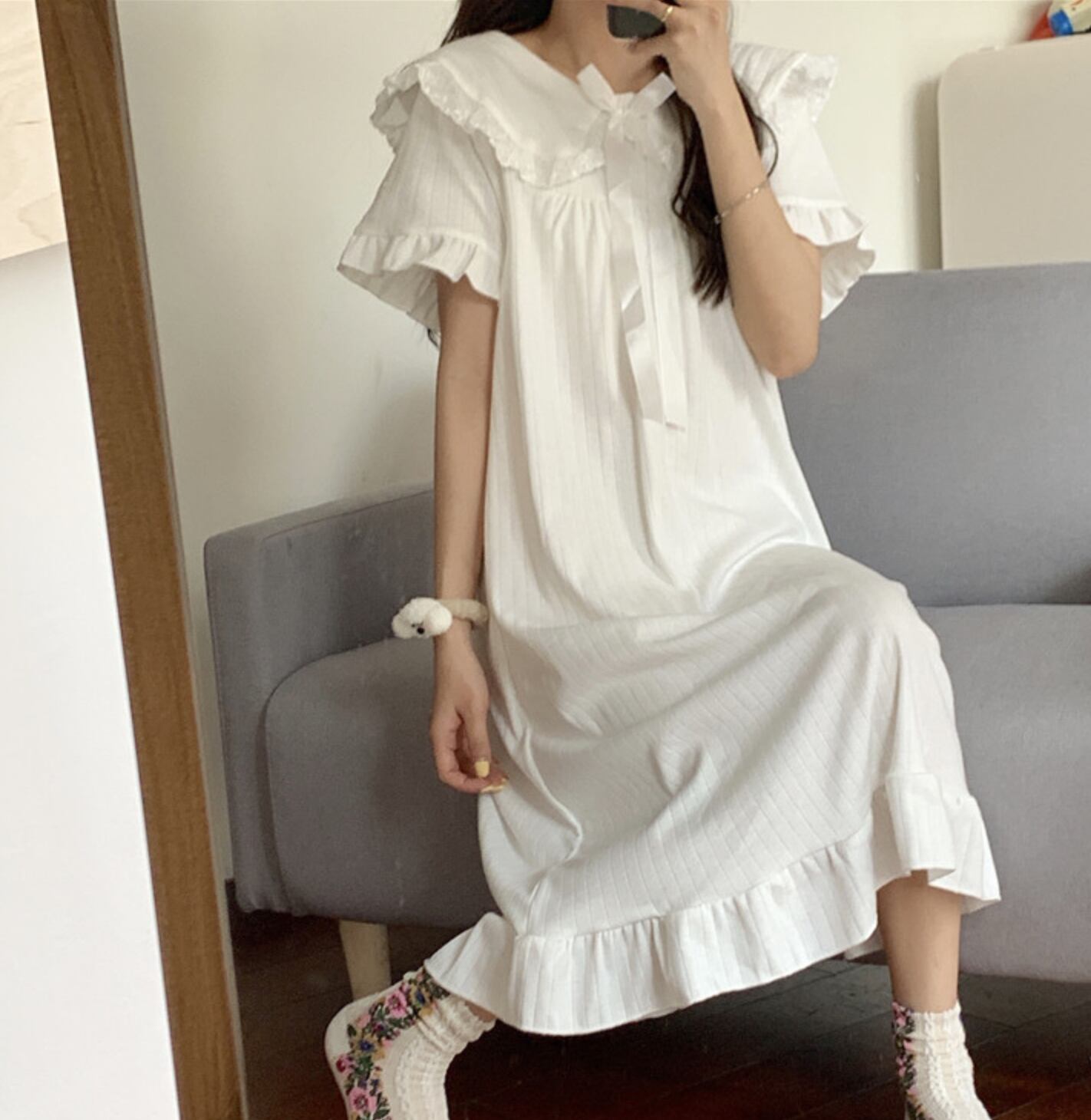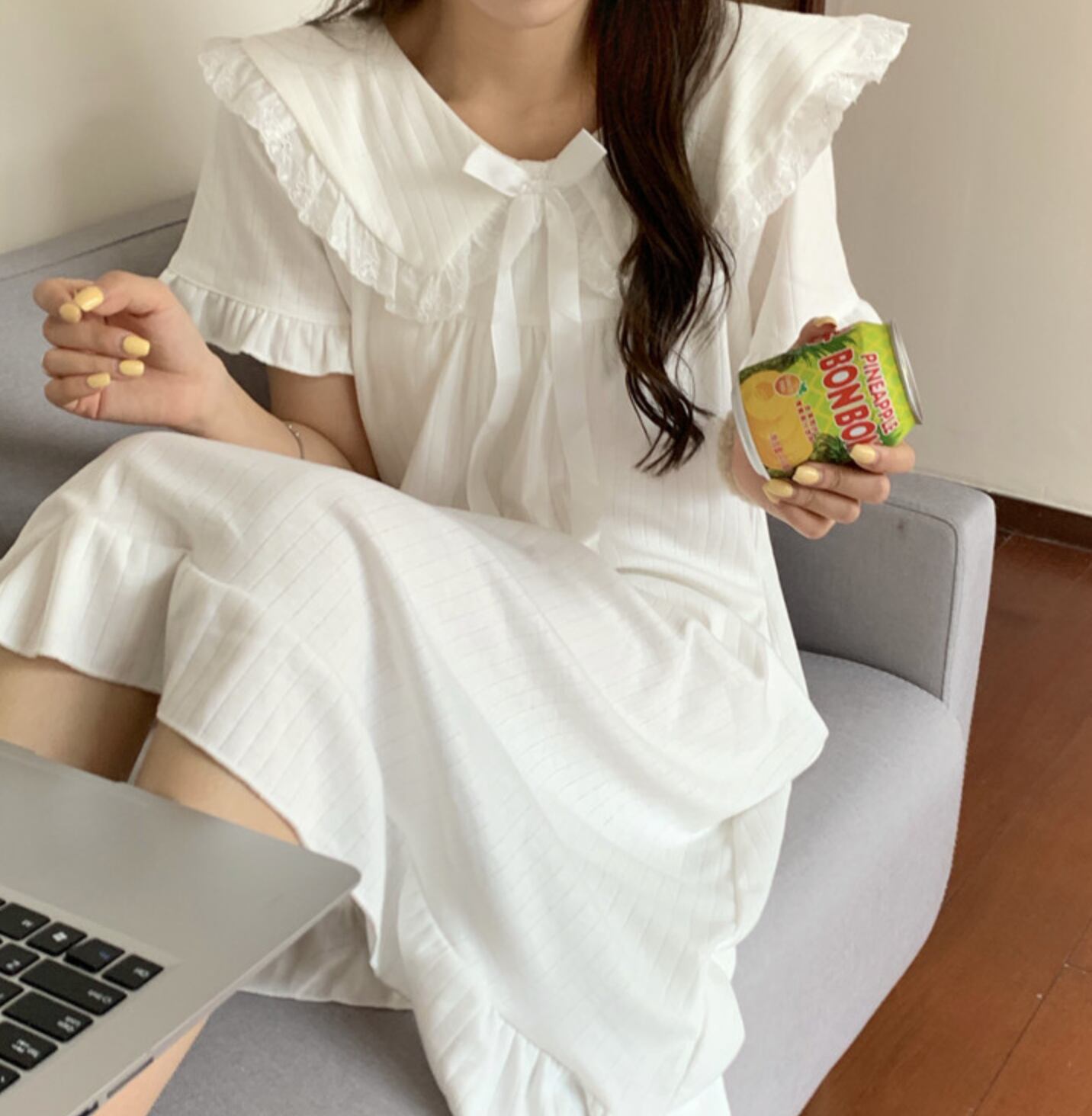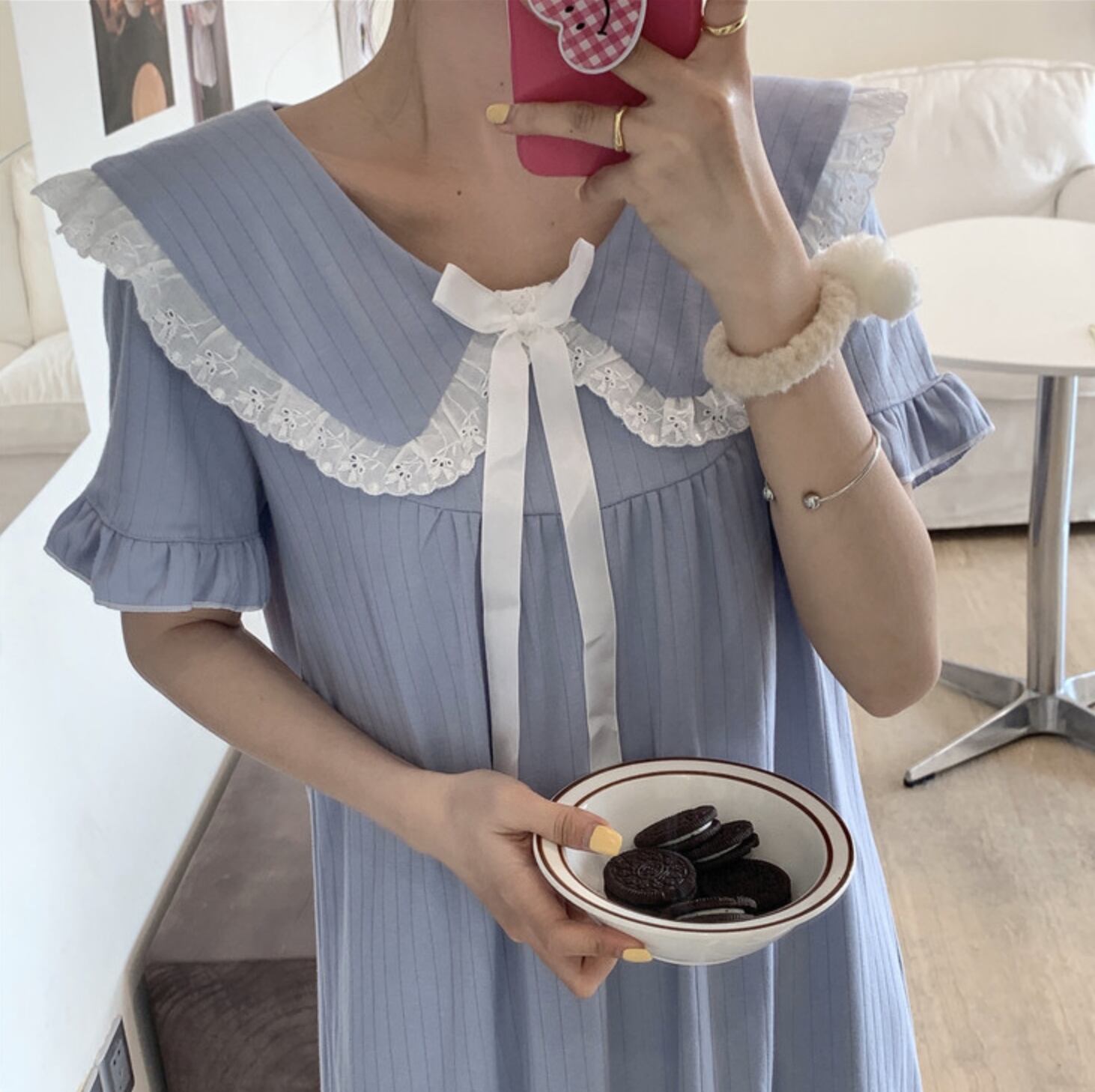 襟元フリルワンピース ガーリーパジャマ 可愛い