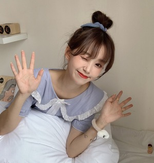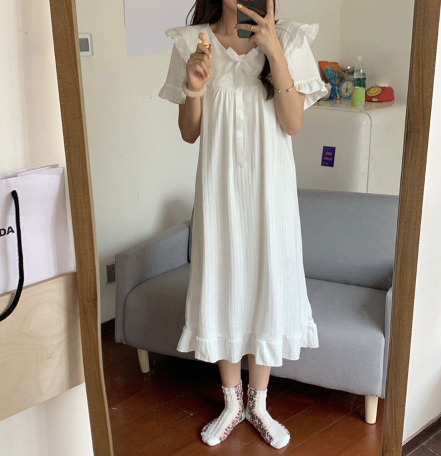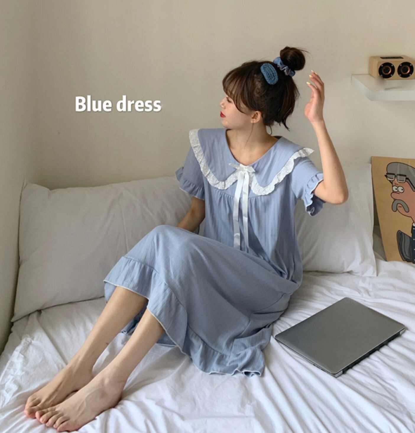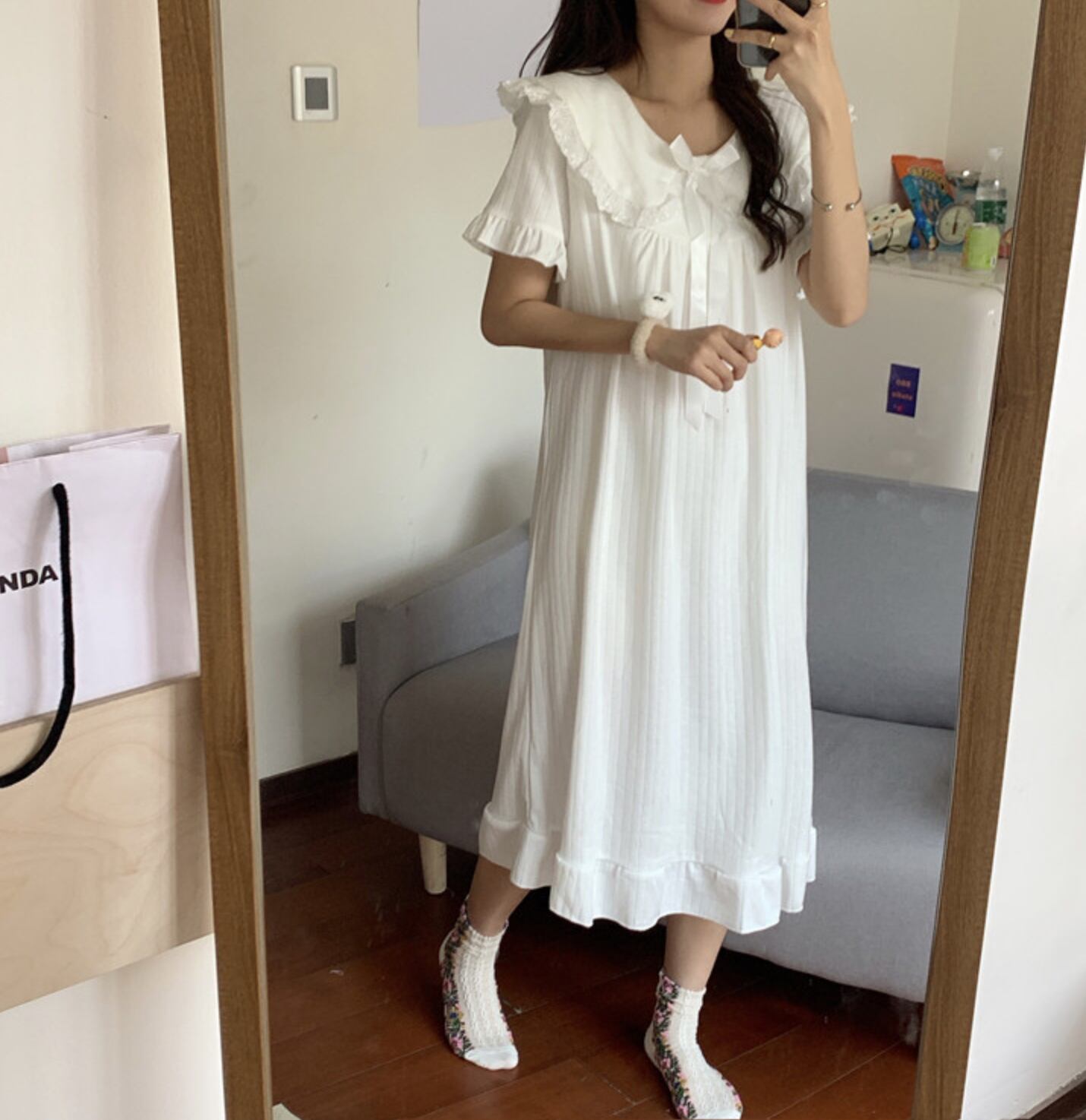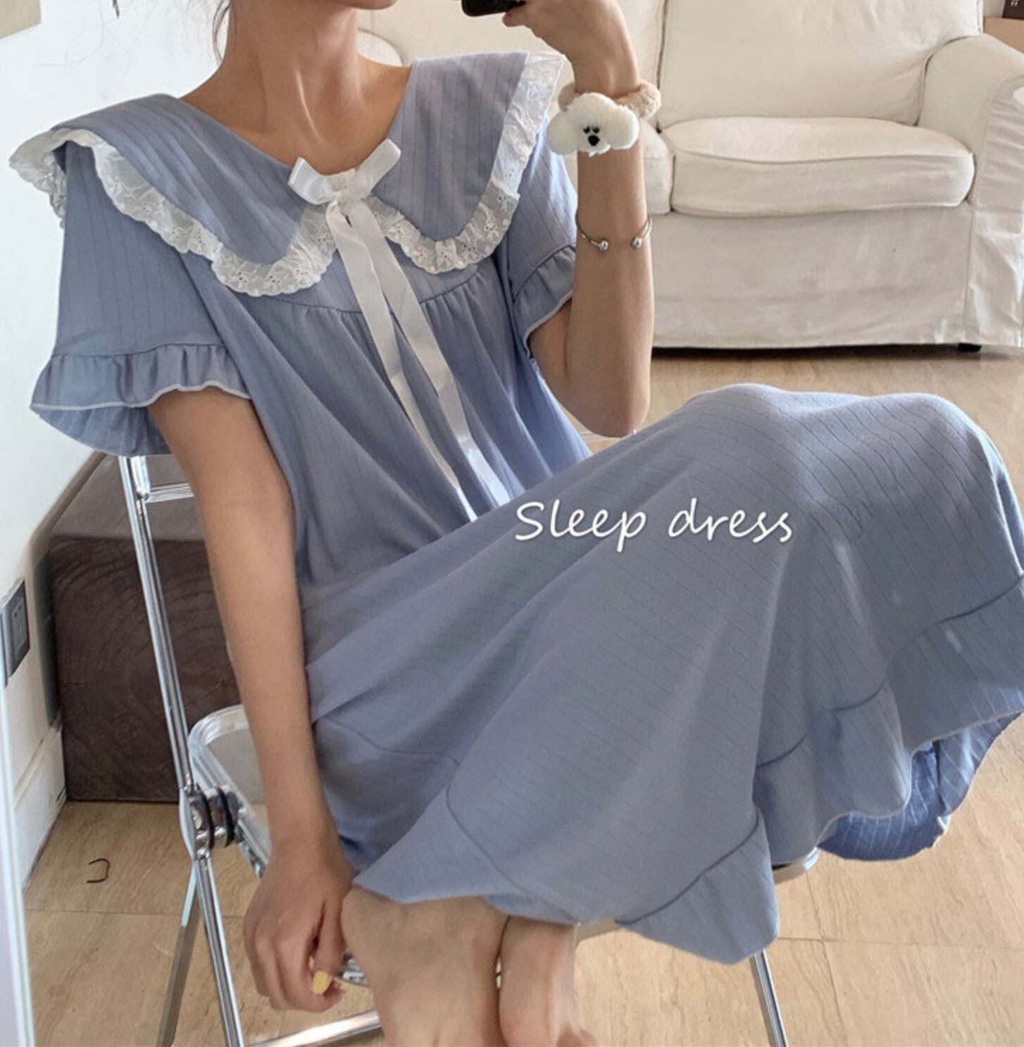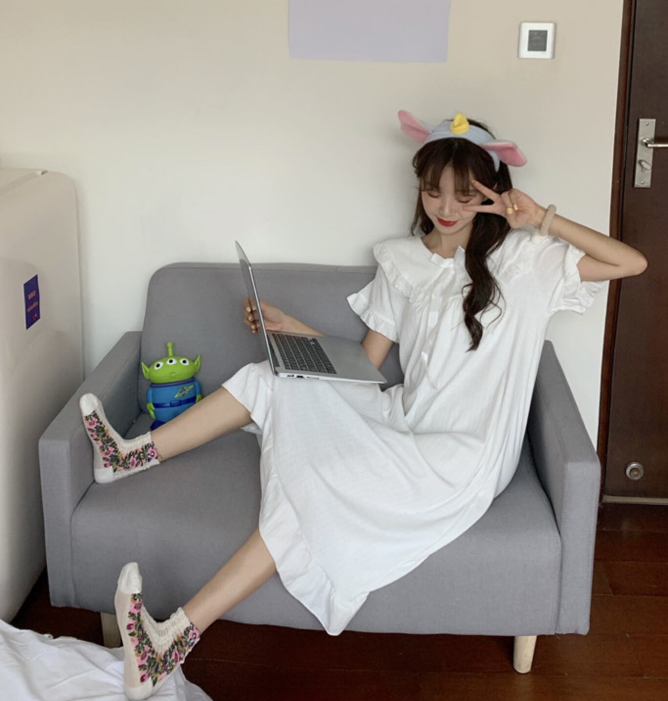 襟元フリルワンピース ガーリーパジャマ 可愛い