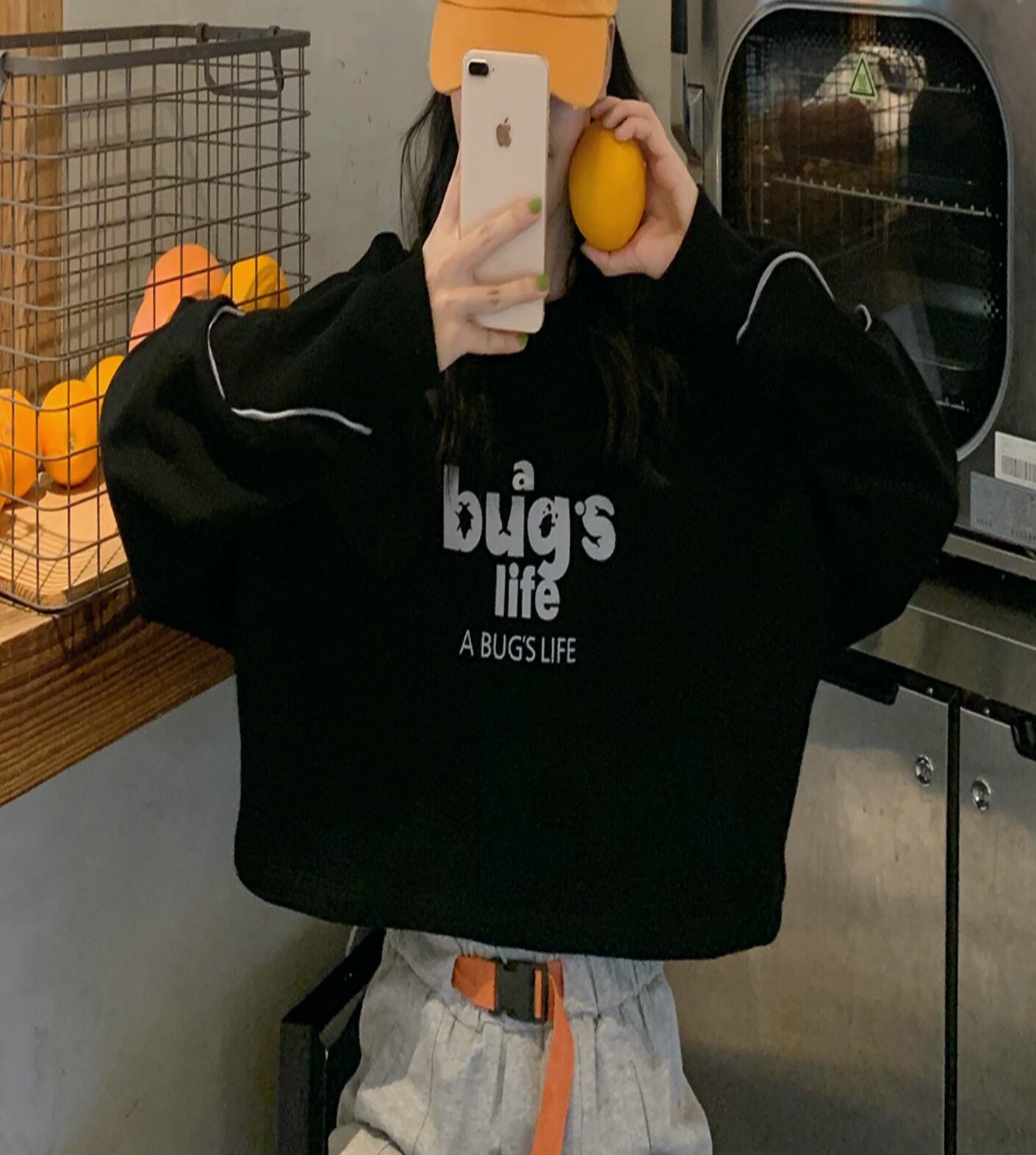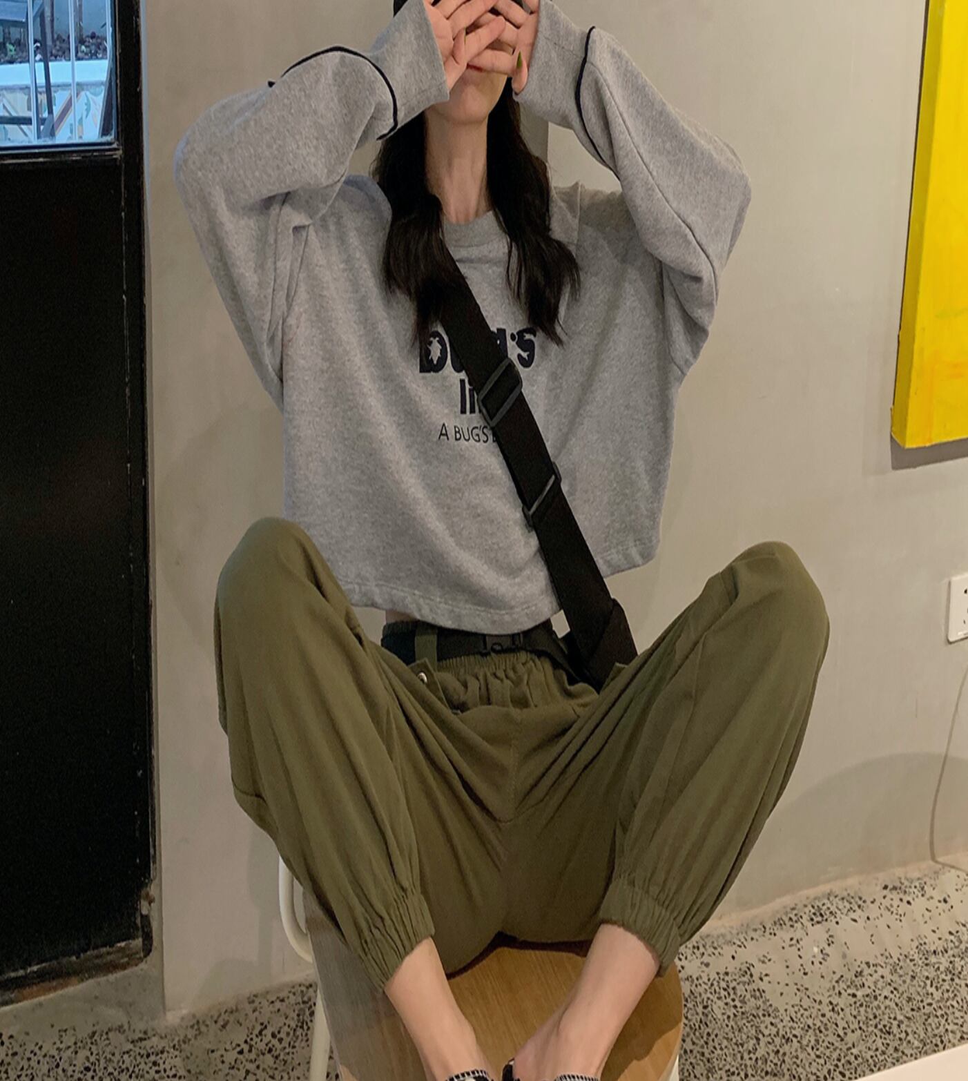 ショート丈スウェットトップス 長袖 韓国風 可愛い