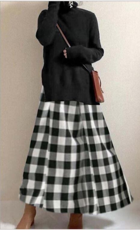 セットアップ ドッキングワンピース 秋冬 モノトーンチェック ハイネック