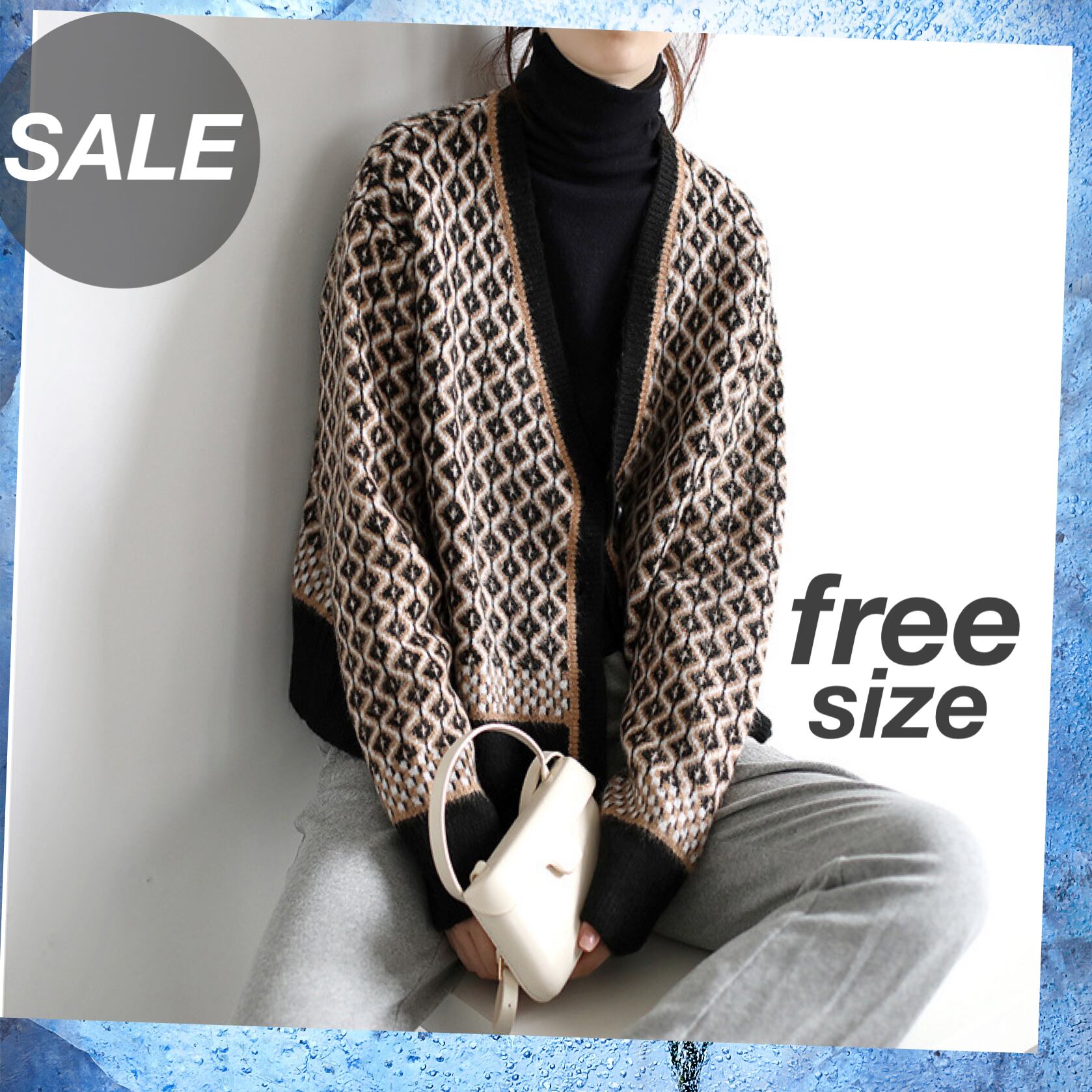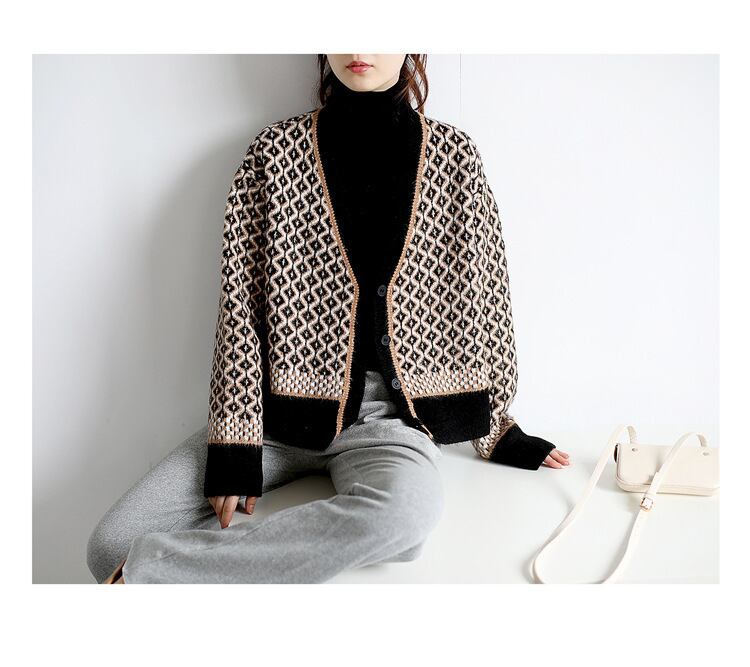 カーディガン 韓国風 ヴィンテージ柄 ブラック 黒 オシャレ 冬 ニット セーター アウター トップス
