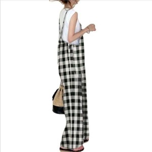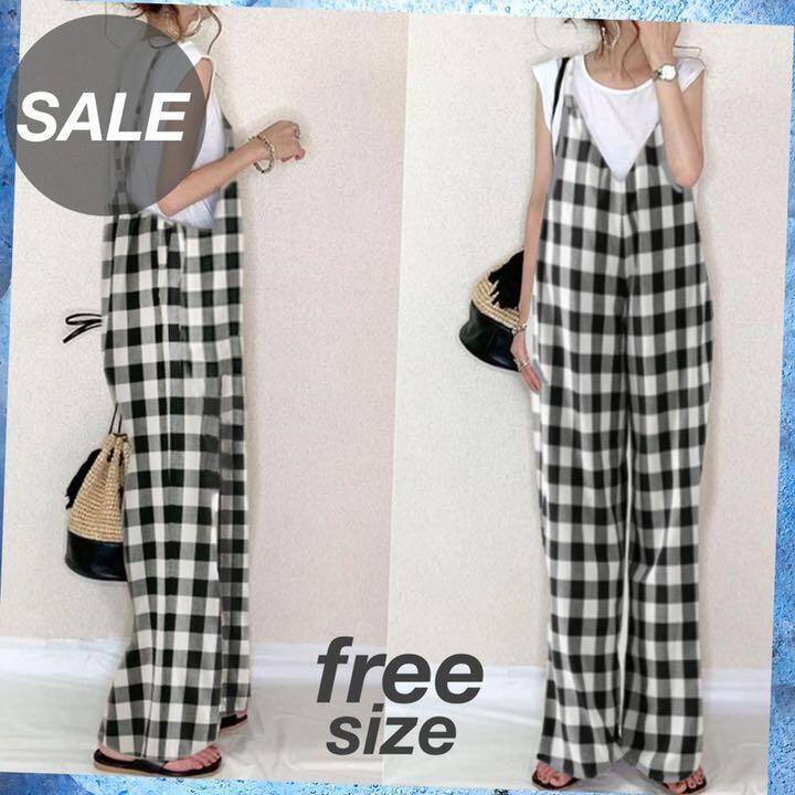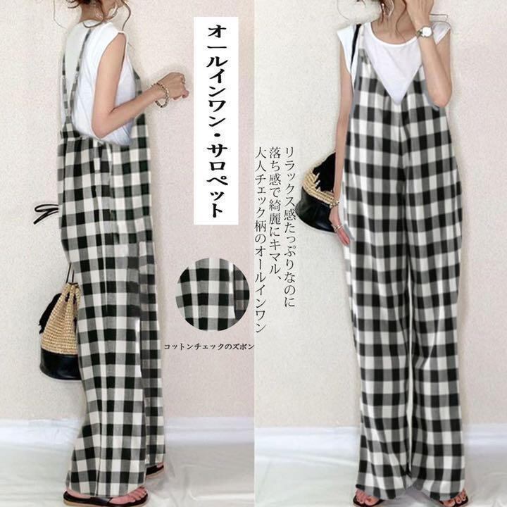 サロペット オールインワン ワイド パンツ キャミ チェック柄
